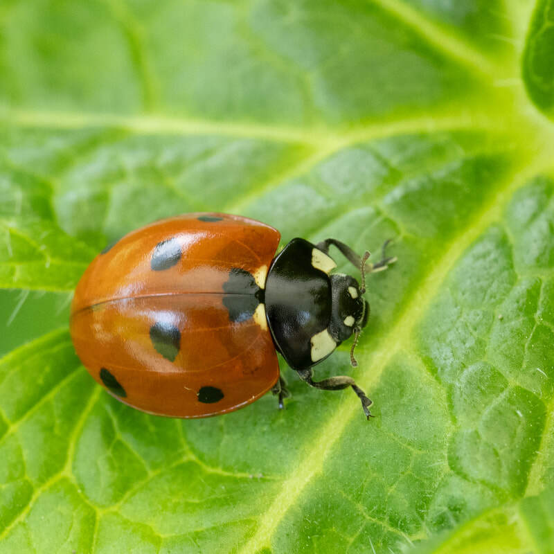 Kl. 09.49 En bladlus har vært litt plagsom og marihøna forsøkte å gjemme seg. Her går lusa sin vei.