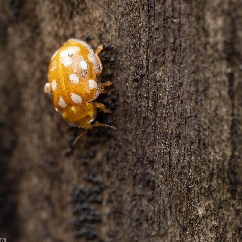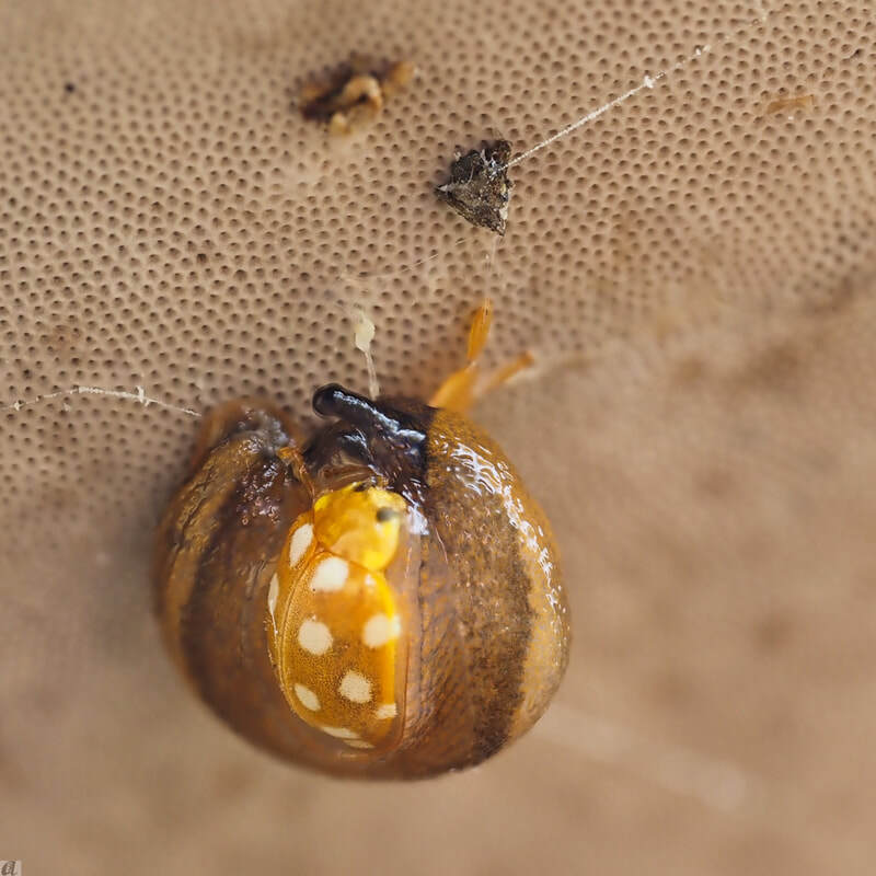 Så vidt jeg kan se tilhører disse familien 16-prikket marihøne (Halyzia sedecimguttata).
